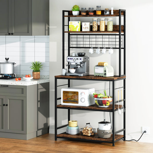 sobaniilo wholesale Kitchen Baking Rack with Outlet, Freestanding Kitchen Storage Shelf Organizer, Steel-Retro